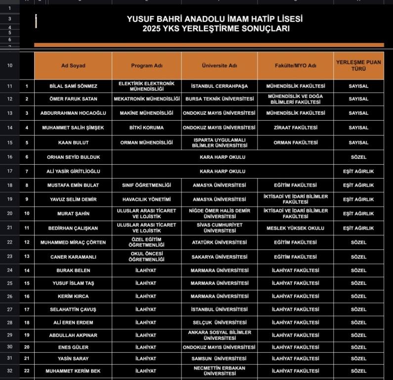 2025 Yükseköğretim Kurumları Sınavı (YKS) sonuçlarına göre, üniversitelere yerleşen tüm öğrencilerimizi yürekten kutluyoruz!