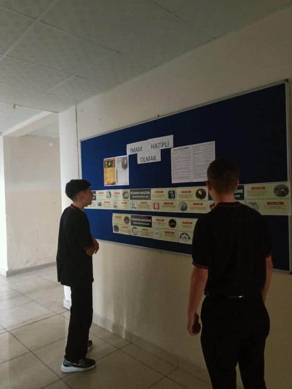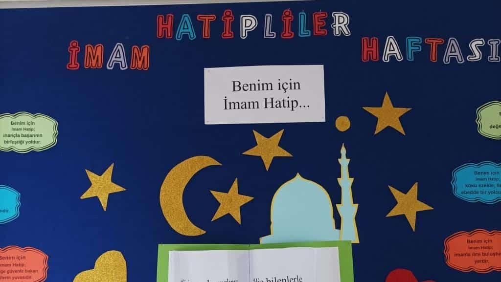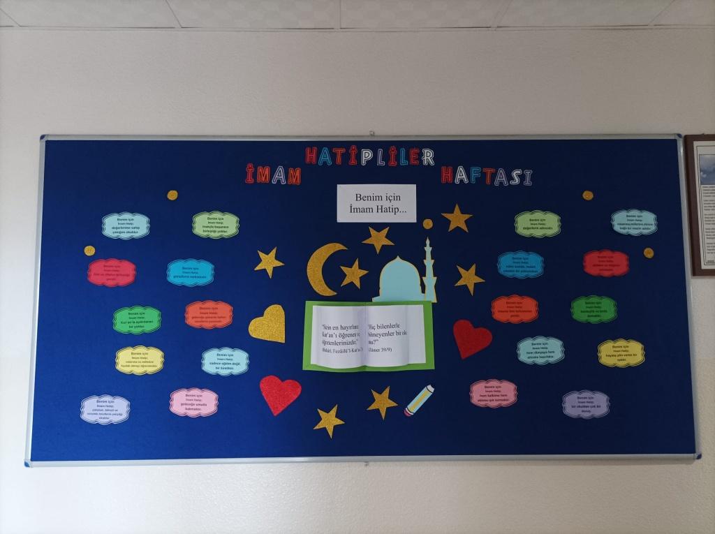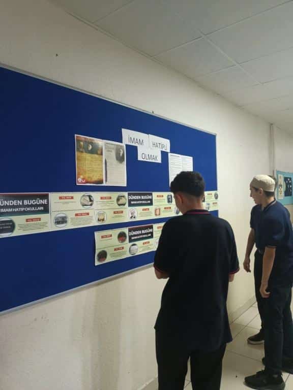 Yusuf Bahri Anadolu İmam Hatip Lisesi ve Ortaokulu’nda, İmam Hatip Okullarının kuruluş yıl dönümü dolayısıyla anlamlı bir pano çalışması hazırlandı. Öğretmenlerimiz Hülya DEMİR, Özkan NEGİZ ve öğrencileri tarafından hazırlanan panoda, İmam Hatip Okullarının tarihçesi, kuruluş amacı ve toplumdaki yeri görsellerle birlikte yer aldı.