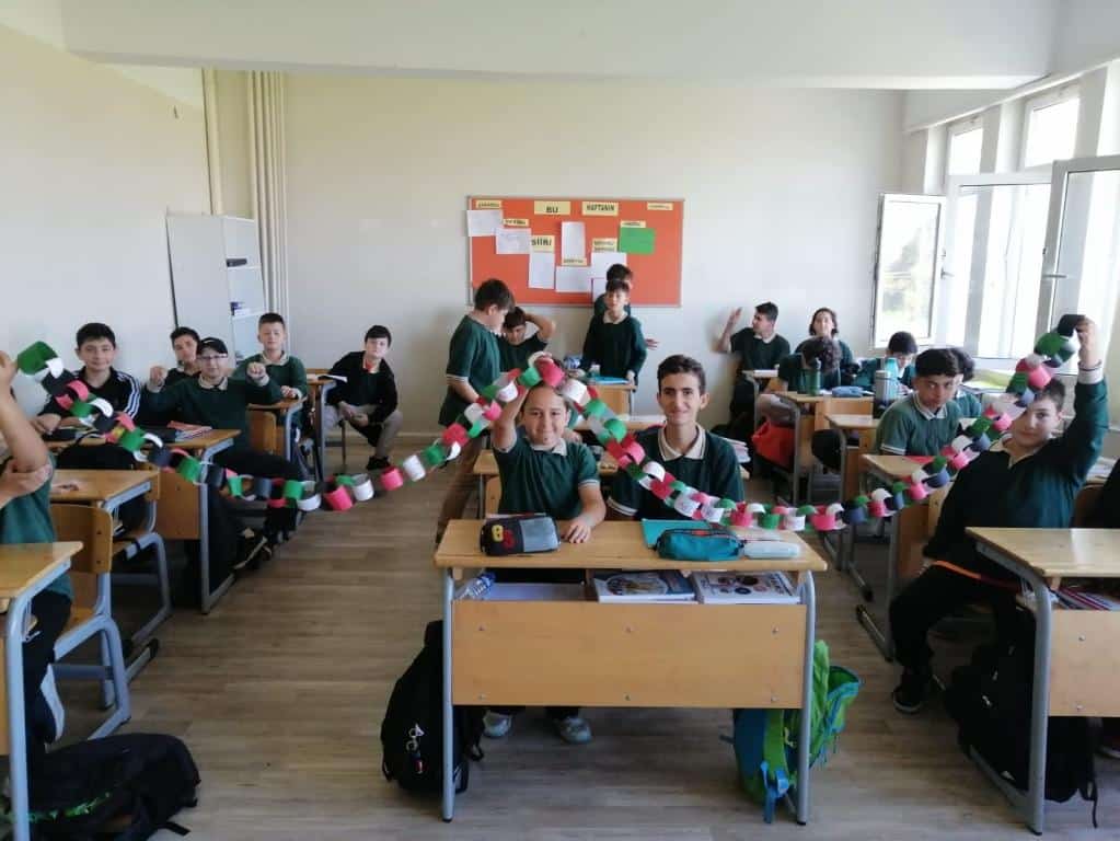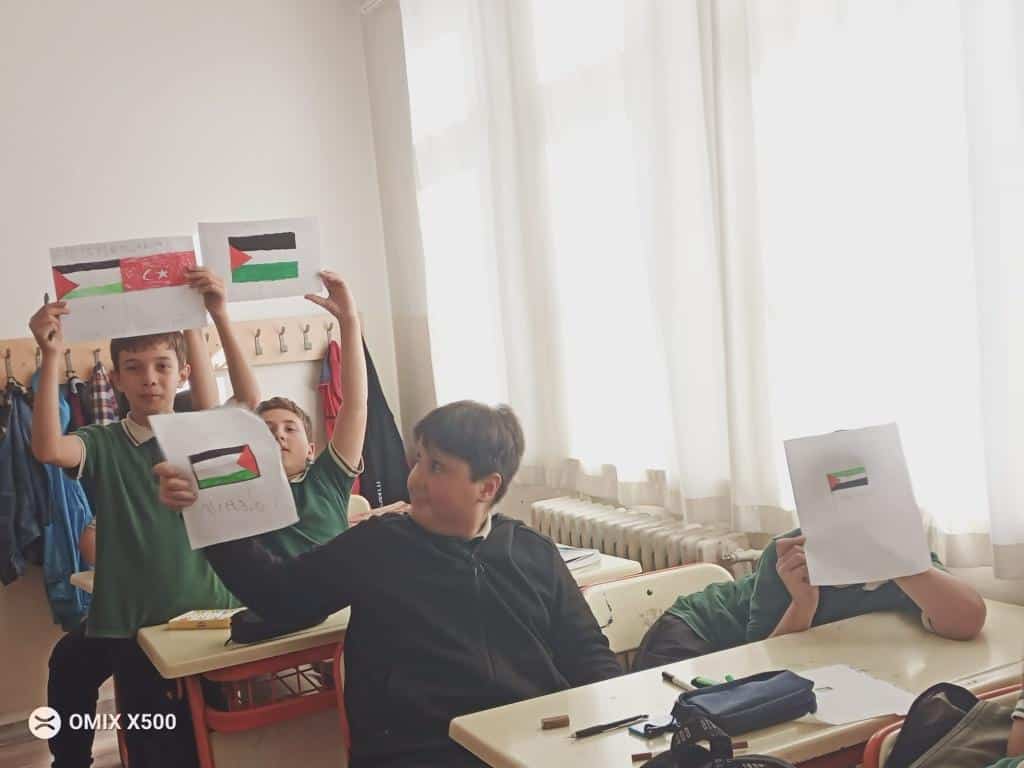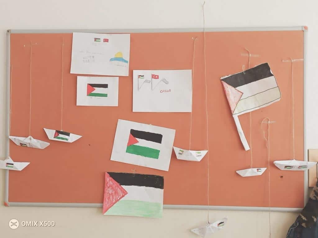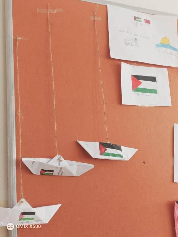 Öğretmenlerin rehberliğinde hazırlanan etkinliklerde, barış, kardeşlik ve insan hakları temaları öne çıkarıldı. Öğrenciler, hazırladıkları çalışmalarla Filistin halkına destek mesajları verdi.